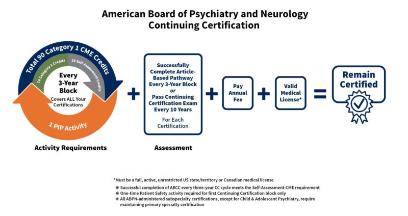 The ABPN has a continuing certification (CC) program and specific activity requirements.